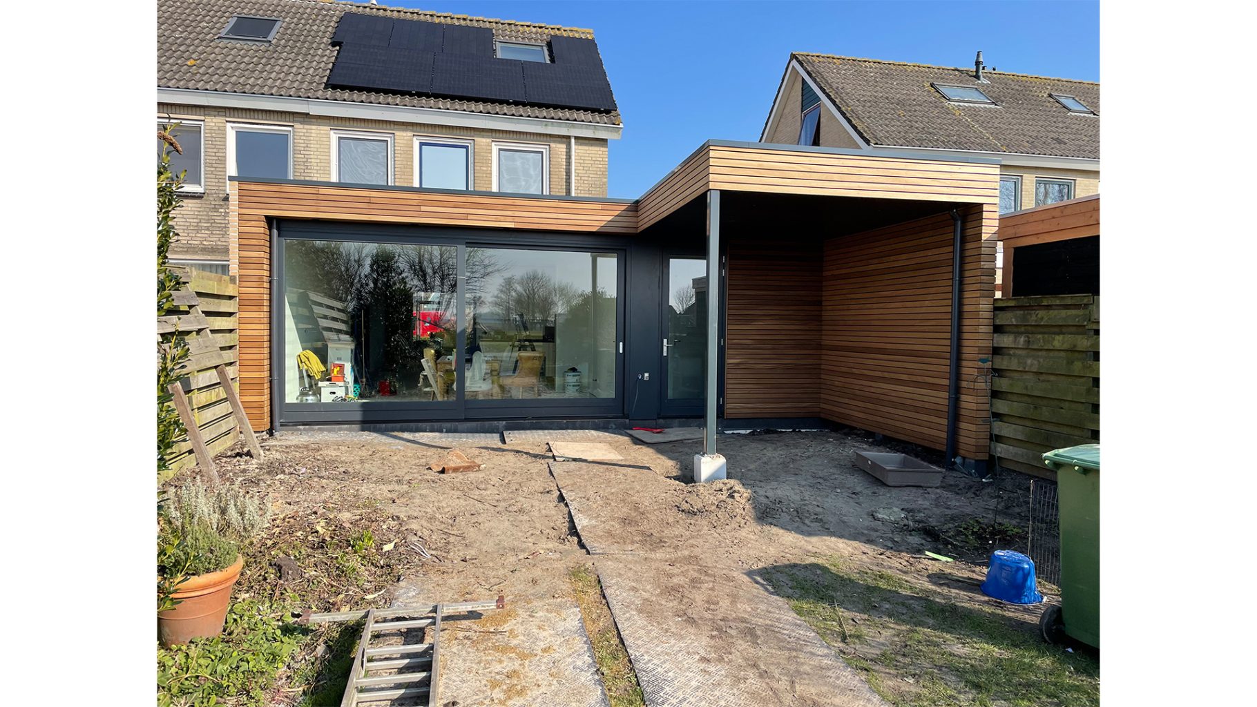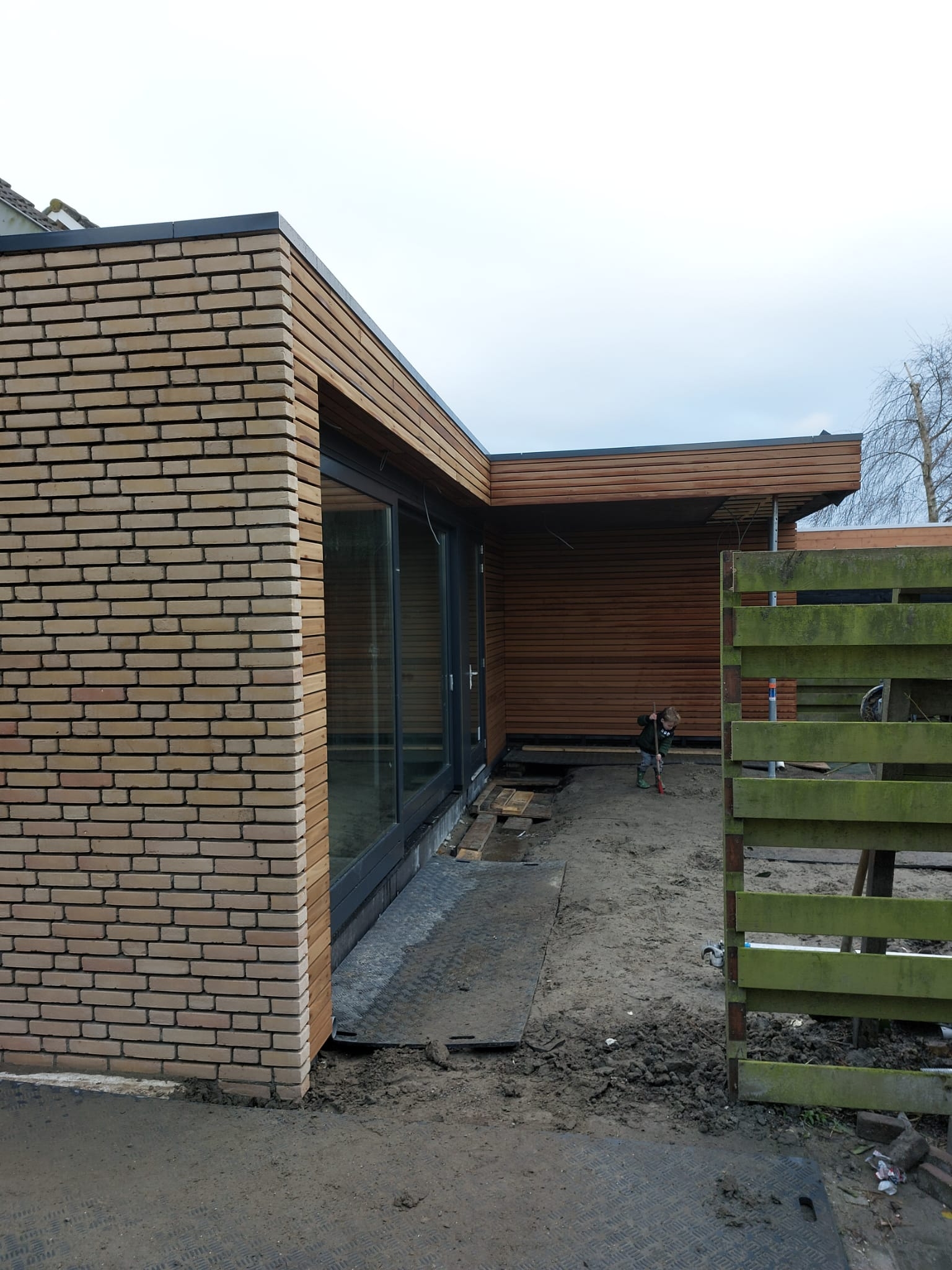 In Arum hebben we onlangs een aanbouw gerealiseerd, de wens van de opdrachtgever was meer ruimte met veel licht in de keuken. Daarnaast moest de aan/verbouw de indeling van de keuken en bijkeuken verbeteren. Om voor veel licht te zorgen is er een schuifpui geplaatst over de gehele breedte van de aanbouw. Door deze grote schuifpui wordt de woonruimte verbonden met de tuin en het prachtige landschap dat daar achter ligt.