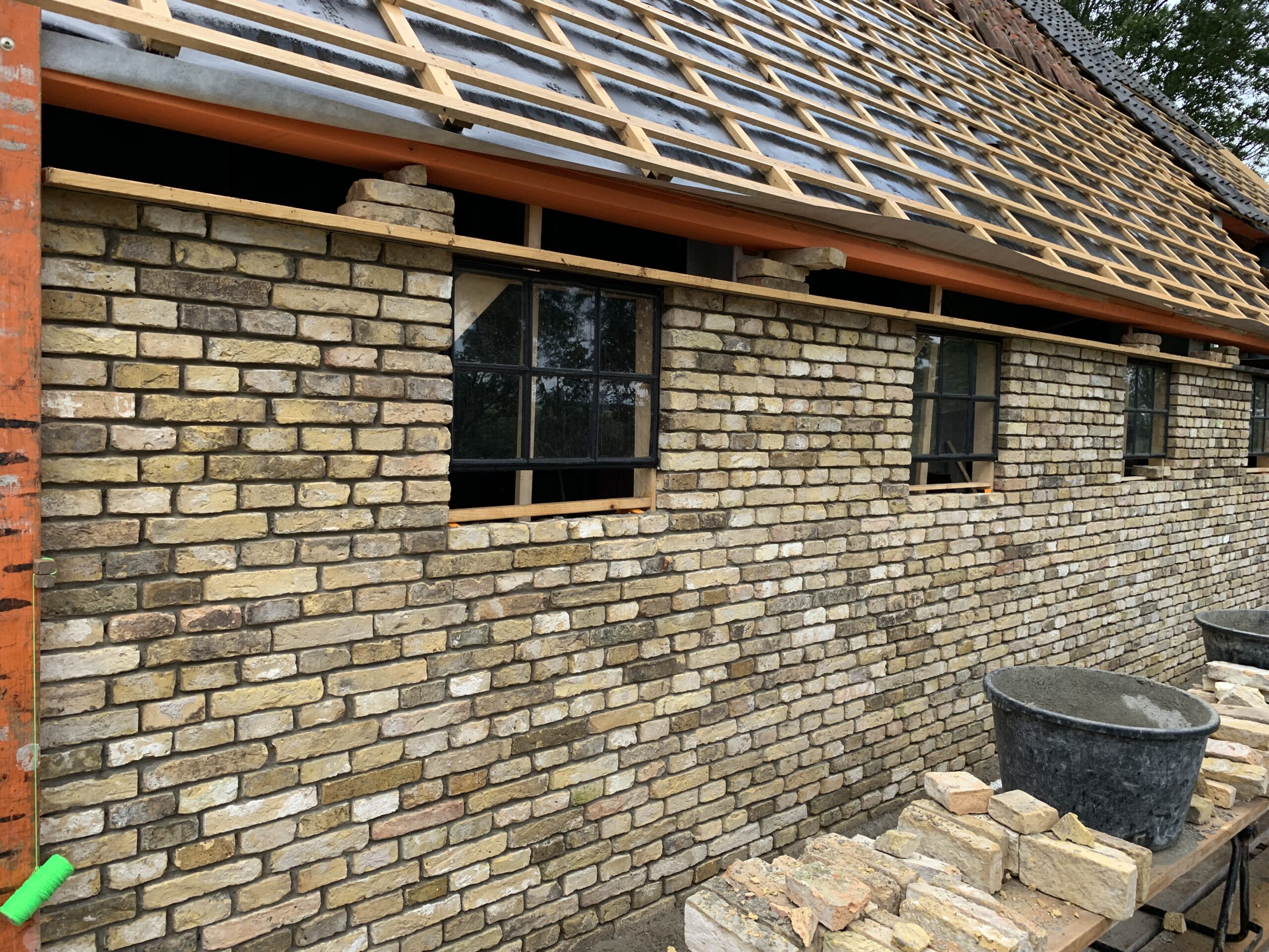 Onze uitdaging. Allereerst hebben we het dak gestut, zodat de muur kon worden verwijderd. We hebben gelukkig veel ervaring met het verbouwen van grote boerderijen en we weten dat we grondig aandacht moeten besteden aan de constructie. Nadat we alles ondersteund hadden, konden we beginnen met het realiseren van het gelijkvloerse appartement.