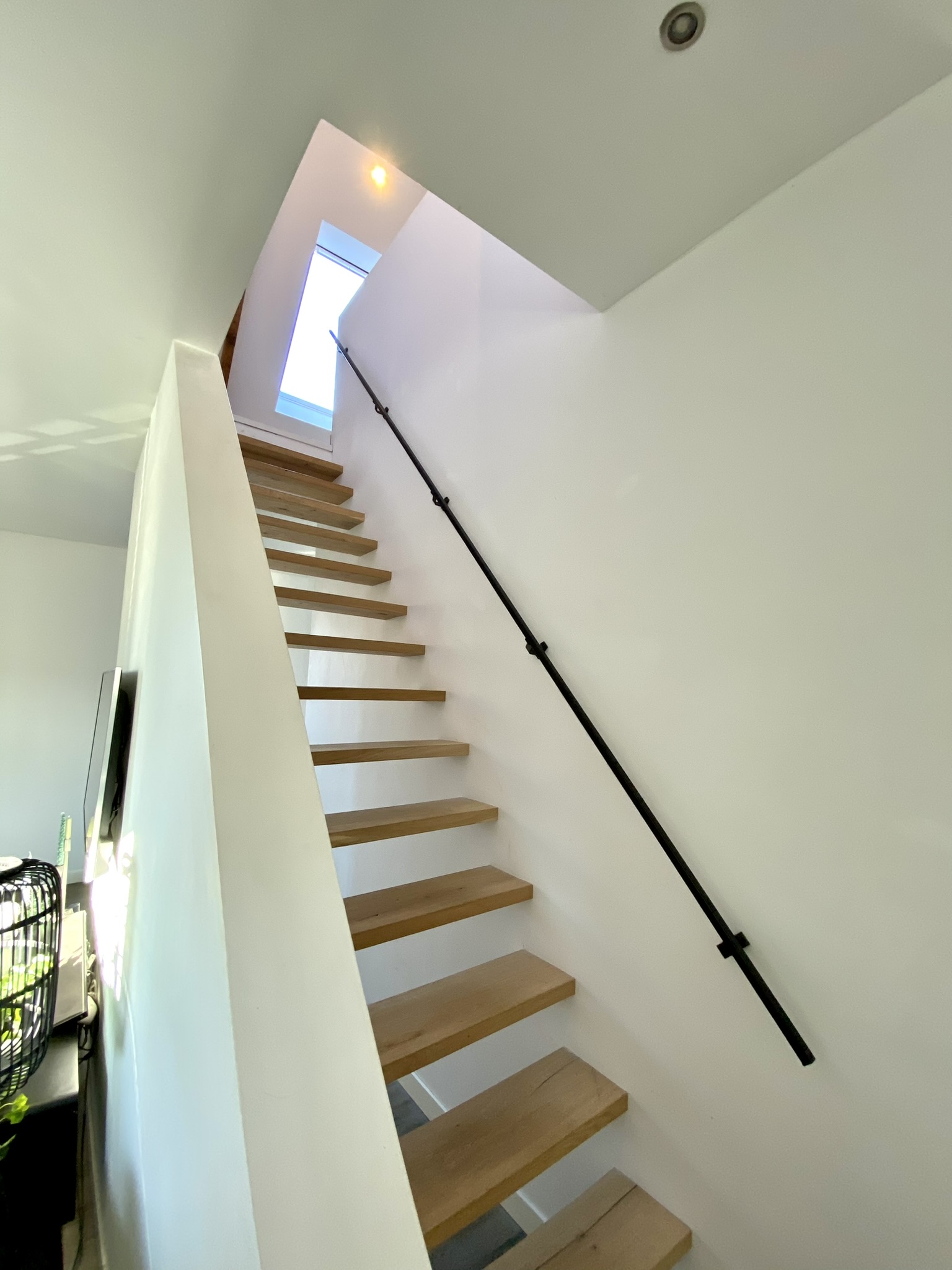 Lees alles ver dit project in Wonen&Co van de Leeuwarder Courant op zaterdag 27 mei! In Witmarsum stond een pand met de functie van opslagruimte. Een grote garagedeur gaf toegang tot de ruime opbergruimte. Op de vloer onder de scheve kap was een kale grote bovenverdieping. Eén van onze medewerkers had zijn oog laten vallen op dit pand om er zijn eerste eigen woning in te creëren. Het is een pand met geschiedenis, want ons aanneembedrijf heeft hier zijn wortels. Voor Hofstra Bouw was dit ooit een uitvalsbasis.